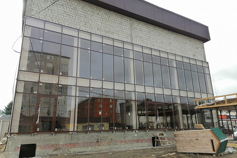 Здание под коммерцию. Остекление выполнено в алюминии, стоечно-ригельная система Татпроф МП-50.